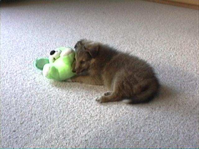 Hier spiele ich gerade mit meiner Lieblingspuppe.