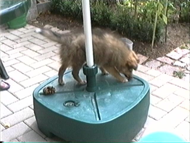 Vom Schirmständer im Garten habe ich alles besser im Überblick.